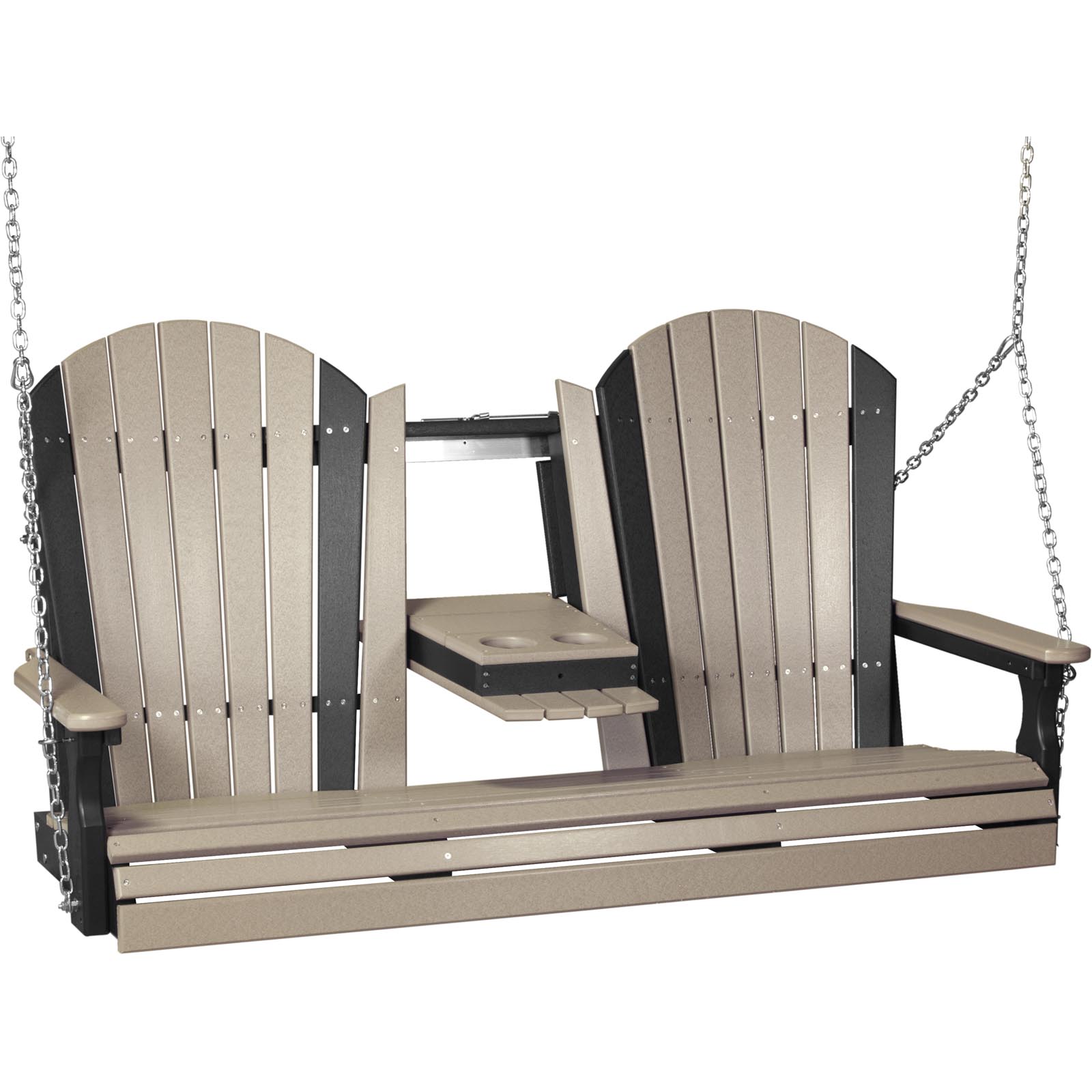 The iconic Adirondack design conjures up camping trips, lakeside cottages, and woodland lodges. Its recognizable shape, famous for both comfort and style, will be a welcome addition to any place you entertain guests or relax with family. The 5′ option comes standard with a flip down center console, perfect for holding your book or iced tea. When you’re ready to seat three, a metal locking pin keeps the center console raised.